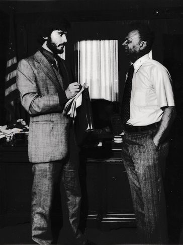 My first real job was as a low-paid intern at the long-defunct Oakland Times, fresh out of high school. While going to Laney College in Oakland, where I eventually got an AA in social sciences, I began my career writing for student publications at UC Berkeley, including writing for The Daily Californian and the Pelican Magazine. Here I am with the Pelican's editor, John Stodder.